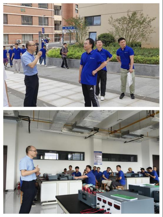 合影结束后,校友们沿着校园路线依次参观,在张校飞老师实验室里近距离了解科研设施与学术动态。漫步校园各处,重温求学时光的点滴。探访数理学院实验楼,感受学院教学硬件的升级。最后来到工程实践中心,在廖院长的细致讲解下,亲身参与并体验霍尔效应实验,沉浸式感受学院实践教学的特色与实力。参观环节尾声,校友们前往毓成公寓梅园食堂用餐,熟悉的食堂味道让“校园记忆”更加鲜活。