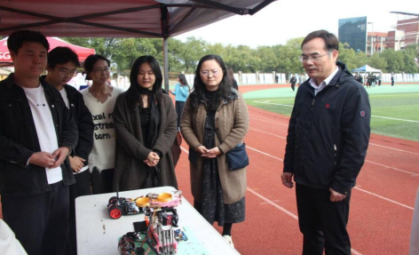 在创新创业成果展实物展示区,涂立桥副书记逐一参观了各实物展位,与师生深入交流,详细询问了作品的创新思路、实践应用及遇到的挑战。他充分肯定了同学们的科研热情和探索精神,并鼓励他们持续深耕专业领域、勇于创新突破。