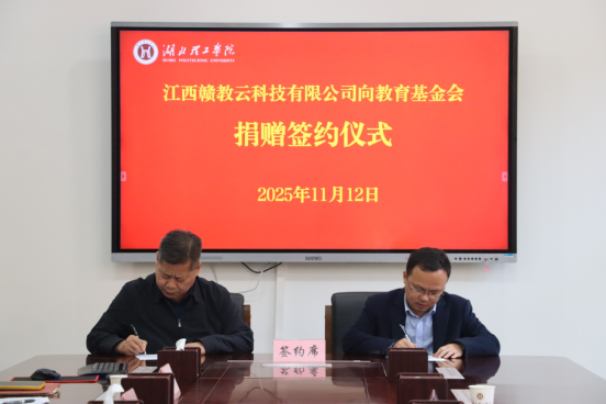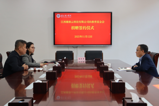 在双方的共同见证下,校企代表现场签署100万元的捐赠协议。协议签署后,冯运仿代表学校,向吕建军颁发捐赠证书,以感谢赣教云科技有限公司对我校教育事业的支持。