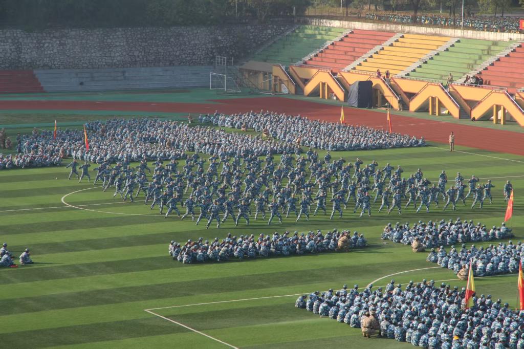 2025级新生军训成果展示在军事训练教官的主持下有条不紊进行。特色方阵表演轮番展示,承训教官的倒功操刚劲沉稳,参训学子们的擒敌拳一招一式尽显锋芒,战术演练模拟战场果敢震感,匕首操英姿飒爽,旗语操默契利落,每一项表演都赢得全场喝彩。各学院代表方阵进行分列式成果展示,新生方阵步伐整齐、口号嘹亮,用规范的动作和昂扬的姿态,全方位展现了军训的丰硕成果。