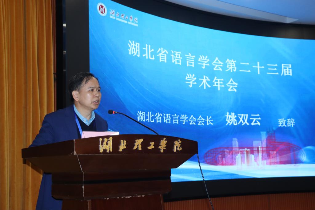 湖北省语言学会会长姚双云对湖北理工学院的大力支持表示诚挚的感谢。他指出,面向新文科建设,语言研究需要做好从“书斋之学”转向“时代之问”、从“单一学科”转向“交叉融合”、从“理论研究”转向“实践赋能”、从“传统教育”走向“AI产业前沿”。学会在今年首次设立并评选了“湖北省语言学会青年学者优秀论文奖”。这个奖项寄托着学会对青年学者勇于探索、敢于创新的殷切期许,希望全省的青年语言学人,能够守正创新,追求卓越,早日成长为推动湖北语言学事业发展的中流砥柱。