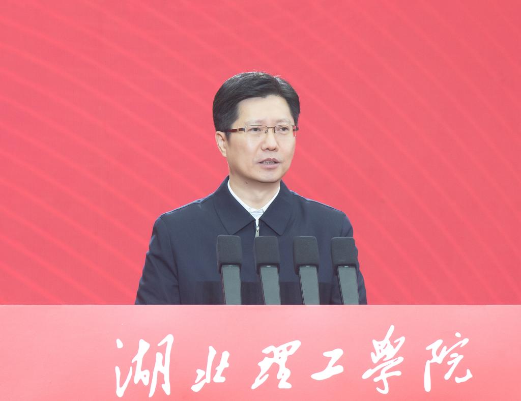 黄石市委书记郄英才发表讲话。讲话指出,湖北理工学院始终与时代共奋进、与黄石同呼吸,走出了一条扎根地方、特色发展的办学之路。50年来,学校实现从中专到专科、从专科到本科、从市属到省属、从培养本科生到培养硕士研究生的多次历史跨越,办学规模已超2.1万人,多项教育改革扎实推进。学校全面对接黄石产业发展需求,近三年校企合作超过1400项,科技成果转化落地430余项,毕业生年均留黄率达到21%,真正实现了城市与大学的双向赋能、彼此成就、共同承担。郄英才希望,湖北理工学院坚守初心、勇担使命,在服务地方发展中展现新作为,坚持社会主义办学方向,紧扣应用型办学定位,深化教育教学改革,提升科技创新和成果转化能力,深度融入和服务黄石的经济社会发展,加快建设特色鲜明的高水平应用型大学,为黄石加快建成武汉都市圈重要增长极提供人才和智力支持。他表示,市委市政府将坚定不移实施科教兴市、人才强市战略,营造更优环境,全力支持学校发展。希望广大校友心系母校、情牵黄石,期待大家发挥桥梁纽带作用,积极宣传黄石、推介黄石,带动更多的优质资源、技术和人才汇聚黄石,共享机遇、共筑梦想,市委市政府将为大家回归发展保驾护航;希望广大师生锤炼本领、奋发有为,在投身实践中绽放新风采;希望老师们潜心育人、严谨治学,担当起传播知识、启迪思想、培育新人的美好使命;希望同学们珍惜时光、增长才干,努力成长为栋梁之才。期待更多学子选择黄石、扎根黄石、建设黄石,在这片热土上点亮青春,成就梦想。