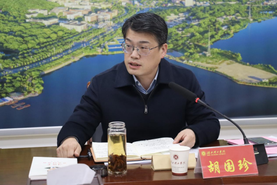 校长胡国珍结合学习情况,作交流发言。他指出,要深刻把握“十五五”规划编制的内在逻辑,理清规划编制的总体思路和主要目标。就我校科学编制“十五五”规划与高质量发展,胡国珍提出五点建议。一是制定学校整体发展规划、学科建设规划、人才队伍规划,聚焦重点谋规划,夯实学校顶层设计。二是明确发展目标,抢抓学校发展的战略机遇。以超前的眼光、长远的考虑、战略的思维、国际化视野规划编制。三是要突出学科引领,推动科技创新和产业创新的深度融合。“十五五”期间,要进一步明确学科建设的龙头地位,聚焦省级优质特色学科和省级特色学科群的建设,强化优势,突出特色,面向智能制造、绿色生态、生命健康等,形成良好的生态效应。培育新能源、新材料、数字经济等新兴学科和交叉学科,加快推动科技创新和产业创新的深度融合。推动校企联合科创平台建设,组建跨学科的攻关团队。加快科技成果转化,服务新质生产力。四是深化教育教学改革,构建应用型人才的培养体系。要坚持把产教融合、打破人才培养的鸿沟作为改革的关键突破点,进一步探索校企共同招生、共同选题、共同培养、共享成果,以及师资融通、课程融通、平台融通、政策畅通的机制,实现学校的专业资源、企业创新资源深入对接。五是提升教师的核心竞争力,强化人才兴校的战略性地位。提高全校教师知识结构水平,为建设高水平大学储备高层次人才,做好拔尖创新人才的引进和培育,招揽国内一流人才,培育一流团队,产出一流成果,提升学校的整体水平和知名度。胡国珍强调,我们要准确地把握现在,清醒地规划未来,紧密结合学校的实际,团结一致,奋发努力,坚定“十五五”期间更名大学的信心和决心,以昂扬奋进的精神状态,迎接新一轮的艰苦创业。