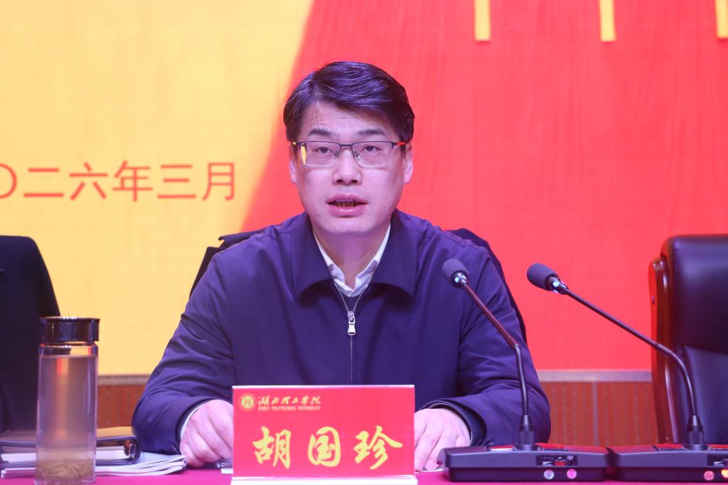胡国珍作学校工作报告。报告全面总结了“十四五”时期及2025年的工作成绩,分析了学校发展面临的形势,部署了学校2026年的重点工作。
