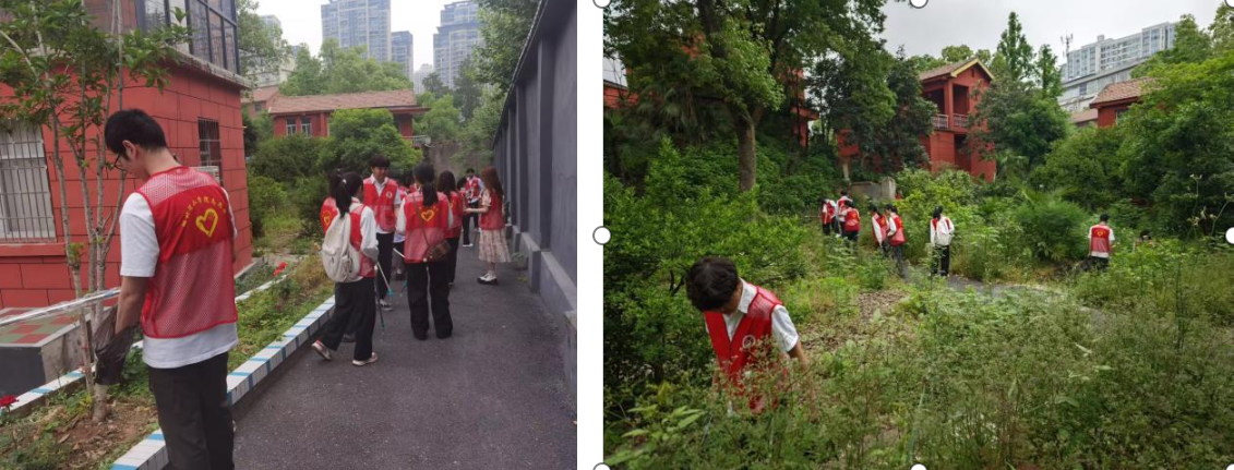 在红军楼纪念馆,我校青年学生党员开展环境卫生整治志愿活动。