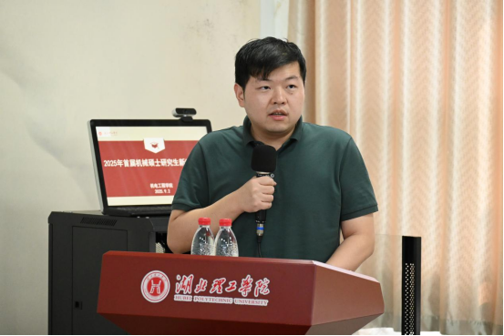 硕士生导师代表罗瑞平结合自身的学术经历和科研感悟,与新生们分享了在机械领域学习和研究的经验。他提到:“同学们要保持对专业的热爱,勇于面对科研中的挑战,在学术道路上不断进取。”