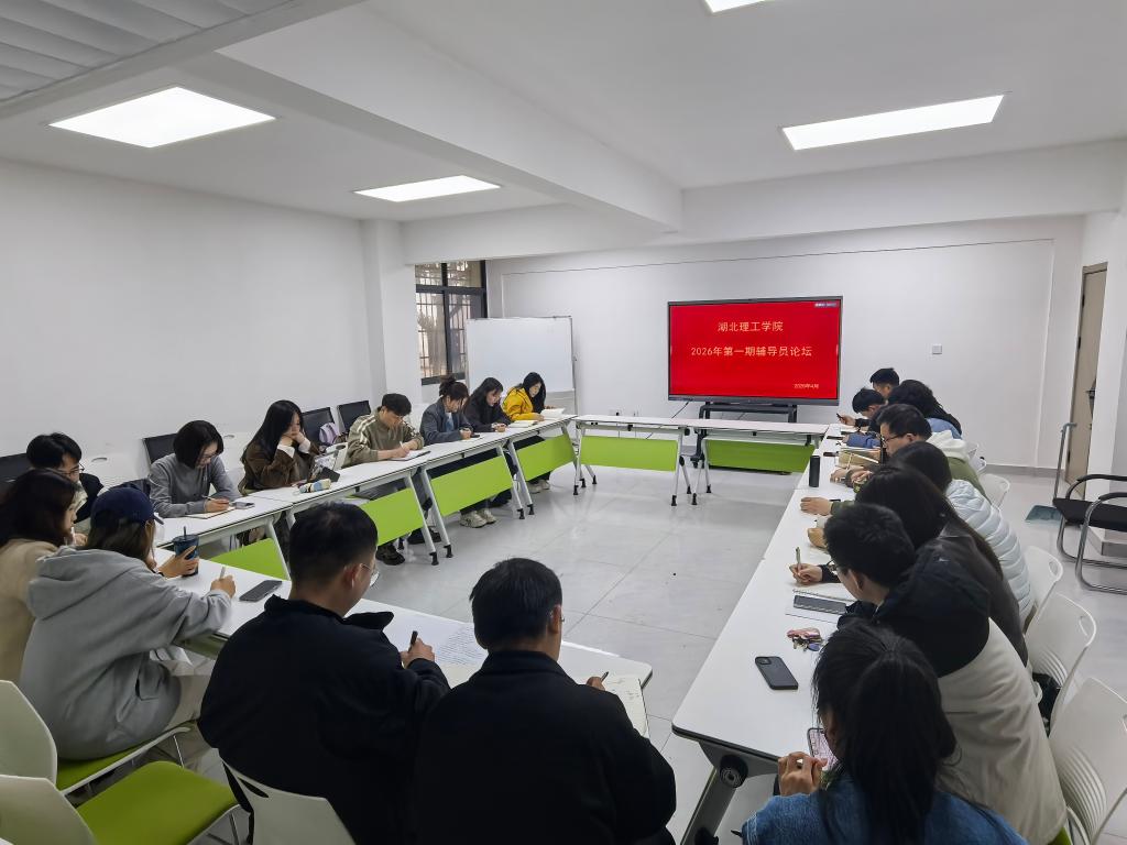 本网消息 4月3日,校辅导员协会在求实社区102会议室成功举办了2026年第一期辅导员论坛,主题为“向‘节’而行,育人有‘度’”。本次论坛旨在通过深入学习《习近平关于树立和践行正确政绩观论述摘编》,结合关键节点育人工作实际,提升辅导员队伍的政治素养和业务能力。辅导员代表谭梅、晋小虎、刘泽锦、熊哲文等共计二十余人参加了本次学习交流会,会议由土建学院辅导员柯露主持。